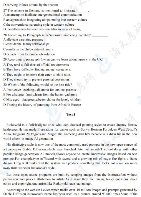 2024考研英语一阅读理解真题