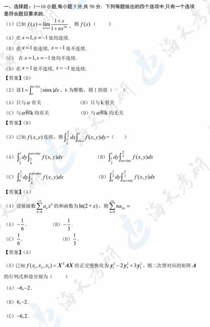 以上就是海天考研网为各位考生整理的2024考研数学三真题及解析汇总,仅限参考。持续为考研学子更新其他考研科目考研真题及答案解析,各位考生可以根据自身需要关注收藏,及时查看完整版2024考研真题及答案解析。
