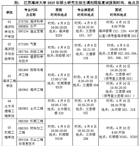 江苏海洋大学2025年研究生调剂时间表